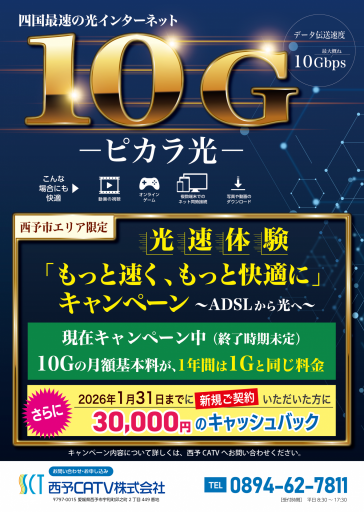 ピカラ光 、10Gサービスが西予エリアで提供開始!