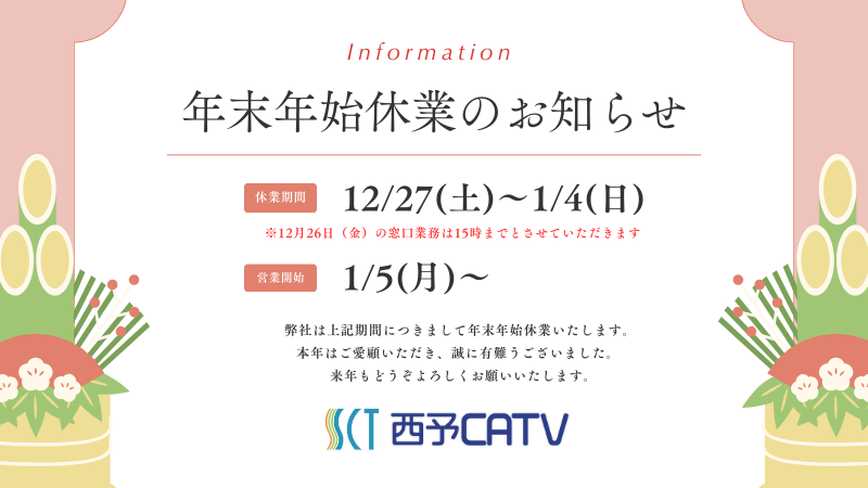 年末年始休業のお知らせ